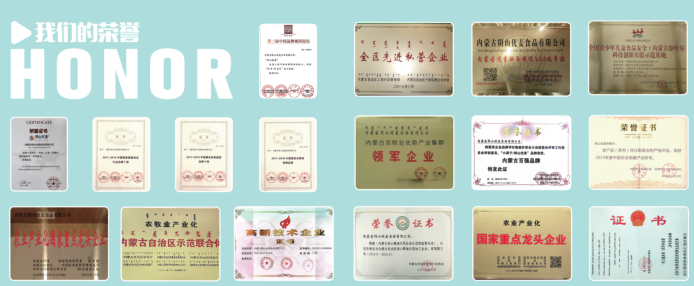 憑借過硬的綜合實力,陰山優麥先后被國家及自治區有關部門評定為“國家高新技術企業”、“農業產業化國家級重點龍頭企業”,并榮獲“亞洲名優品牌獎”、“中國品牌年度創新企業”、“中國燕麥健康食品行業品牌十強”等殊榮。